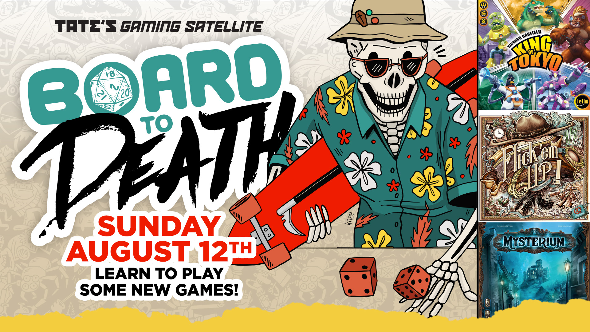 We are bringing back a special event at TATE'S... Board to Death! Free and fun for you! Bring all your favorite friends and family! Learn some new games! We will provide guided introduction to three different & truly epic-fun board games! This event will be focused on: • King of Tokyo • Flick 'em Up! […]